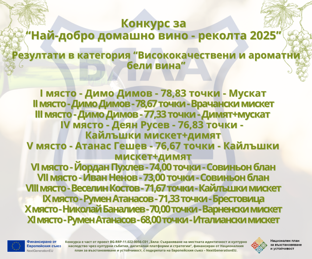 С това отбелязваме традицията, качеството и страстта към домашното винопроизводство в община Бяла.