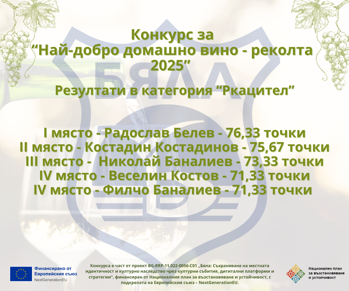 С това отбелязваме традицията, качеството и страстта към домашното винопроизводство в община Бяла.