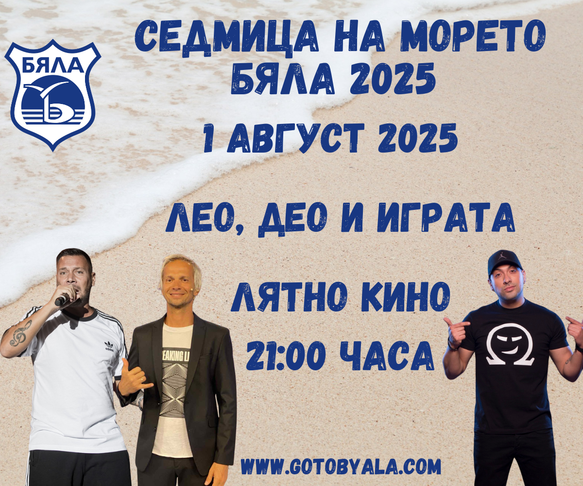 Лятото в Бяла започва с музика, енергия и много усмивки! Откриваме Седмица на морето 2025 с концерт, който обещава ритъм, танци и добро настроение – на сцената излизат Лео, Део и Играта.